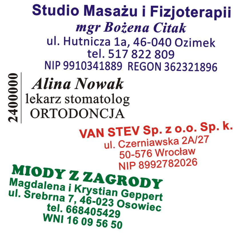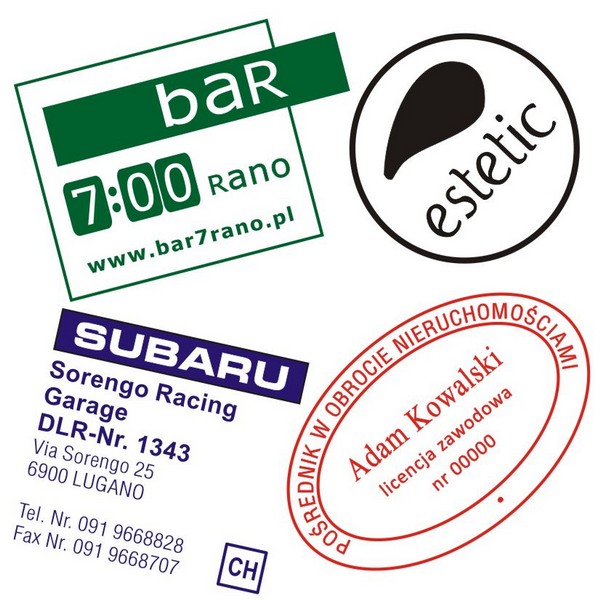 Pieczątki wykonane techniką flash.